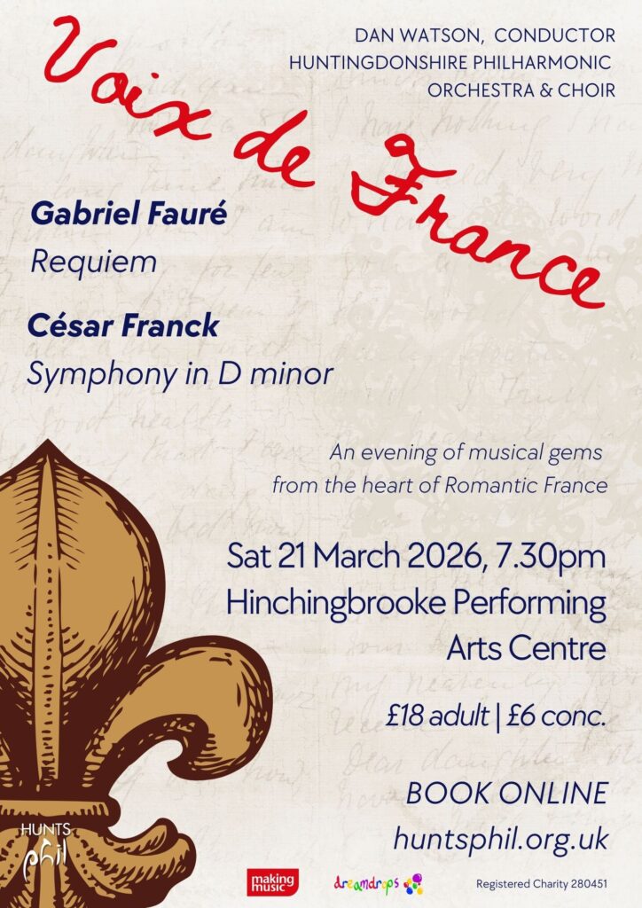 This March, the Huntingdonshire Philharmonic Orchestra & Choir present a French-themed programme of two masterworks. Fauré’s Requiem is unlike any other setting of the mass for the dead: gentle, luminous, and filled with a sense of peace, this is music for comfort.