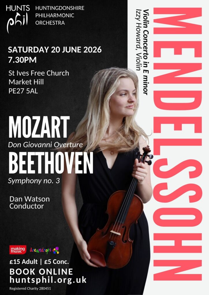 The programme features Mozart’s thrilling Don Giovanni Overture, Beethoven’s monumental Symphony No. 3 (Eroica), and Mendelssohn’s much-loved Violin Concerto with soloist Izzy Howard. Renowned for its sparkling virtuosity, lyrical melodies, and infectious energy, Mendelssohn’s violin concerto offers a perfect showcase for Izzy’s expressive playing and is one of the most joyous and beloved works in the violin repertoire. Together, these masterpieces promise an evening of breathtaking music for a midsummer night.